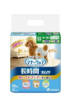ユニ・チャームペット「マナーウェア紙オムツ」は、動いてもズレずにモレ安心な紙オムツ(男女共用)です。