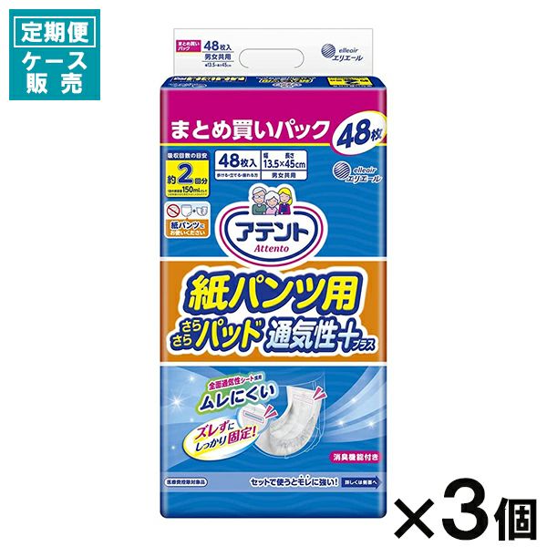 【定期便】【ケース販売_3入り】アテント 紙パンツ用尿とりパッドぴったり超安心2回吸収48枚