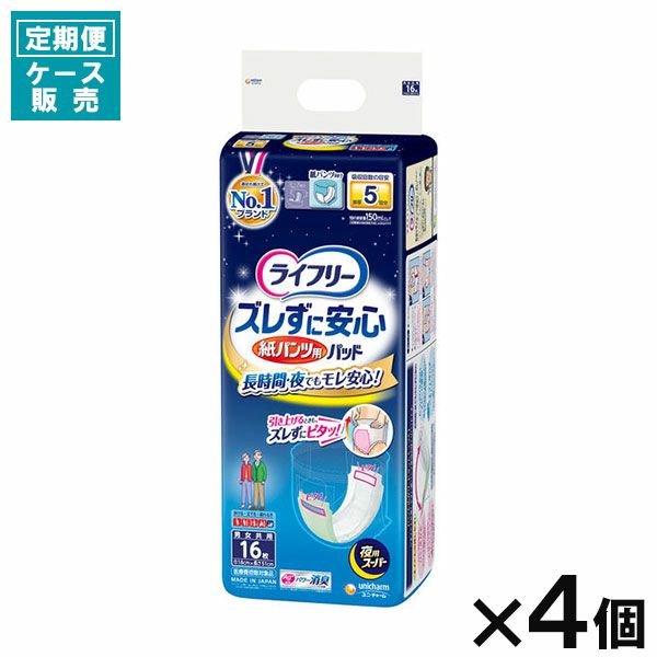 <使用方法>●ズレ止めテープをはがさずそのままお使いください。●別売りの「紙パンツ」と一緒に使います。紙パンツ専用の「尿とりパッド」です。1.尿とりパッドを差し込みます。紙パンツが丸まらないようにはき、尿とりパッドが底につくまで入れます。2.前後のズレ止めテープを紙パンツにとめます。前と後ろを紙パンツに押しつけるだけです。3.紙パンツを上げます。立ち上がって紙パンツをゆっくり上げます。丸まらないので尿とりパッドを直す必要がありません。※前後のズレ止めテープがお肌に直接つかないようにご注意ください。※パッドをはずす時は、前後のズレ止めテープをめくるようにはがして、取りはずしてください。