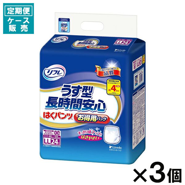 うす型長時間パンツタイプ。歩ける・立てる・座れる方・吸収量約4回。消臭ポリマー配合。