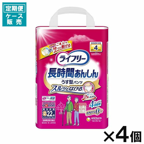 【定期便】【ケース販売_4入り】ライフリー 長時間あんしんうす型パンツS22枚