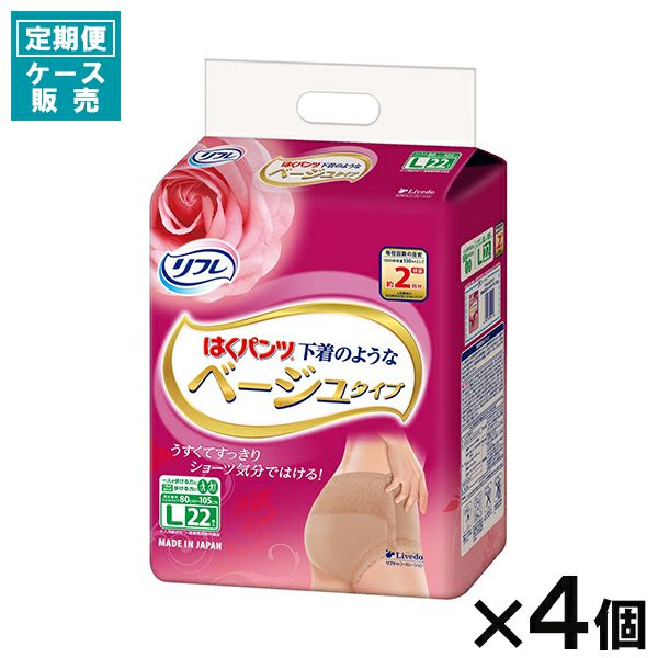 【定期便】【ケース販売_4入り】リフレ はくパンツ 下着のようなベージュタイプ Lサイズ 22枚入