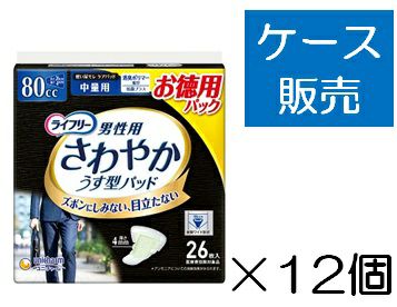 【ケース販売_12入り】ライフリー さわやかパッド男性用中量26枚