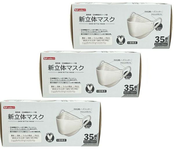 【k-select】新立体マスク レギュラーサイズ 35枚入(個包装タイプ)3箱セット