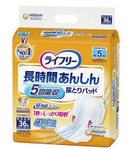 【ケース販売_3入り】ライフリー 長時間あんしん尿とりパッド5回 36枚