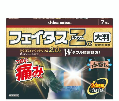 他の画像を見る 【第2類医薬品】フェイタスZαジクサス大判 7枚 【セルフメディケーション税制対象商品】 セルフメディケーション税制対象 本体価格 ¥ 2,002 税込 カートに入れる お気に入りに登録する