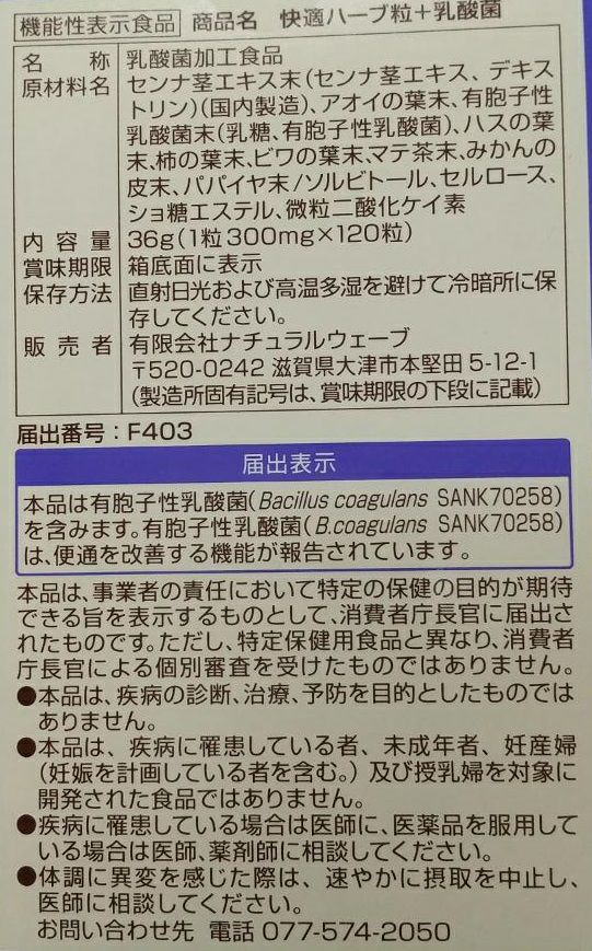 【機能性表示食品】快適ハーブ粒プラス乳酸菌120粒