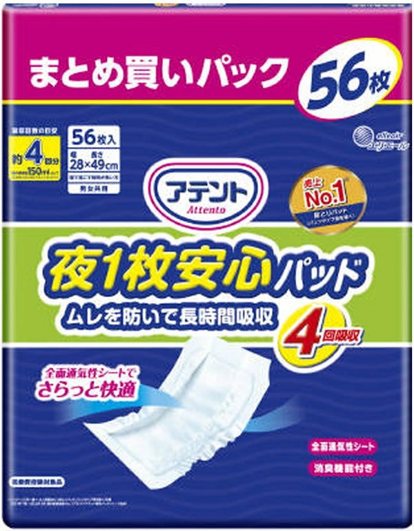 アテント夜1枚安心パッドムレを防いで長時間吸収4回吸収56枚