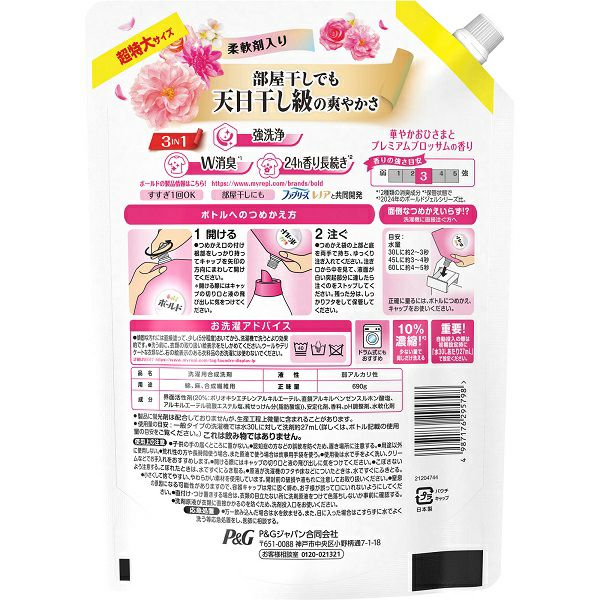 他の画像を見る ボールド 柔軟剤入り 洗濯洗剤 液体 華やかおひさまとプレミアムブロッサムの香り 詰め替え 超特大 690g P&Gジャパン 本体価格 ¥ 548 税込 カートに入れる お気に入りに登録する