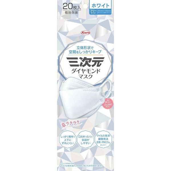 三次元ダイヤモンドマスク Fサイズ ホワイト 20枚 興和